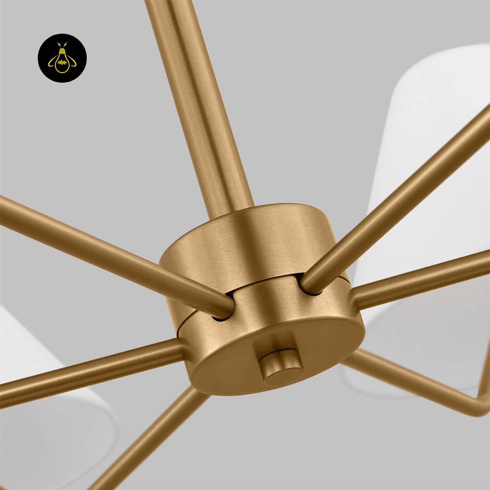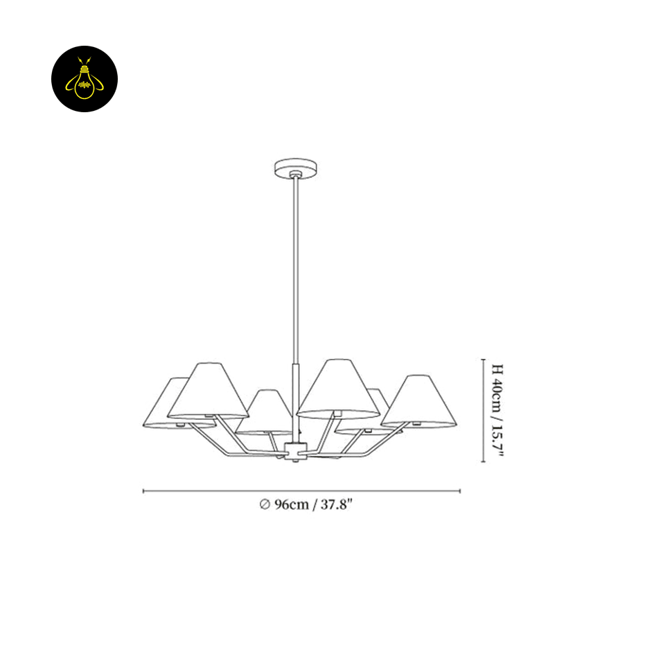 This fabric shade chandelier has six lights covered with crisp, white fabric shades. The brass finish adds a warm, elegant touch. It’s perfect for your dining room, living room, or even a large bedroom. The light is soft and inviting, making any space feel cozy and welcoming. It measures 37.8 inches across, making it a good size for most rooms. You can easily adjust how high it hangs (11.8″ rod, longer rods available).