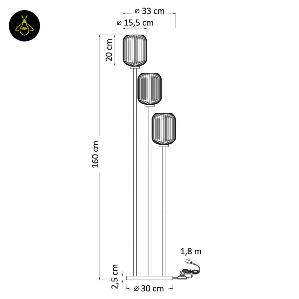 Stainless Steel Floor Lamp – Triple Amber Glass Design | Floor Lamp for Living Room, Bedroom | Jagmag Lights