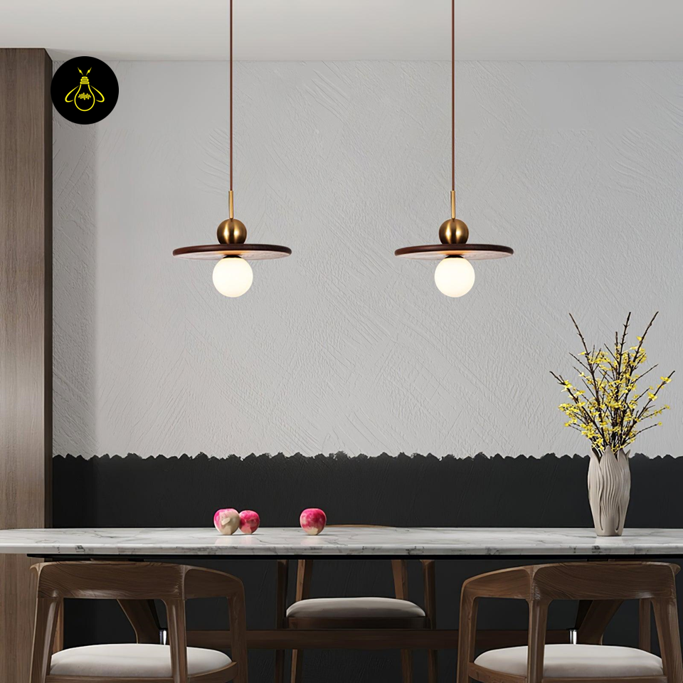 Bring a touch of modern sophistication and natural warmth to your home with the Jagmag Lights Glass Pendant Lamp. This elegant fixture combines the beauty of walnut wood with sleek gold accents and a soft white glass shade. Handcrafted in India, this pendant light creates a welcoming ambiance in any room.