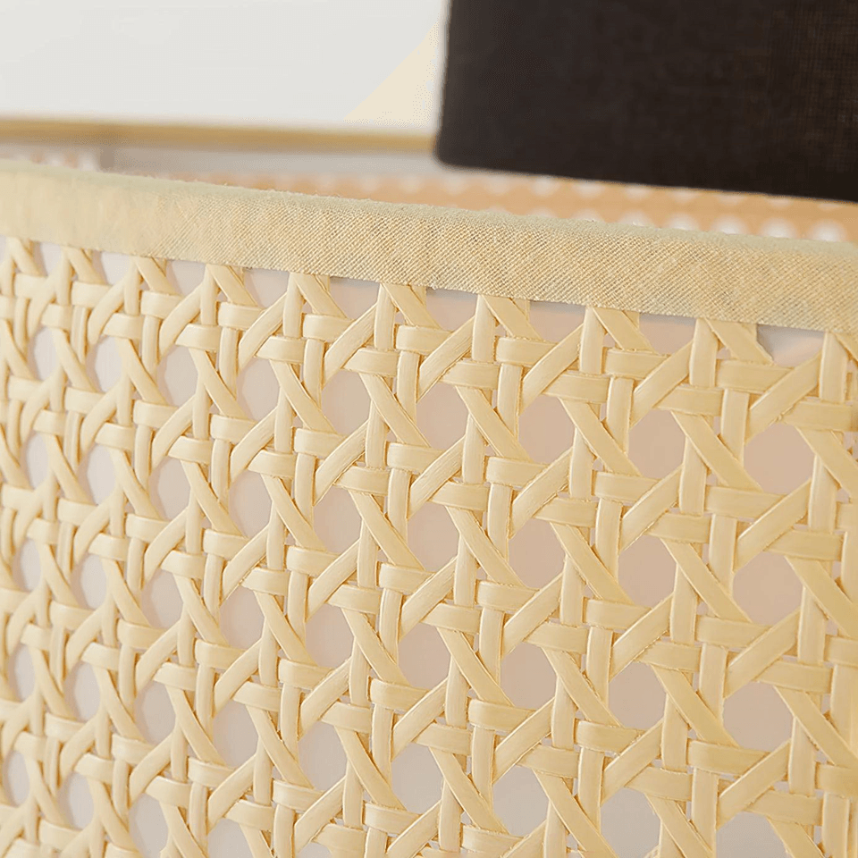 • Drum Shade Design: The retro design features a black linen interior shade surrounded by a rattan shade and a metal frame. The black fabric cord adds a finishing touch. Expertly crafted for a touch of elegance and style.