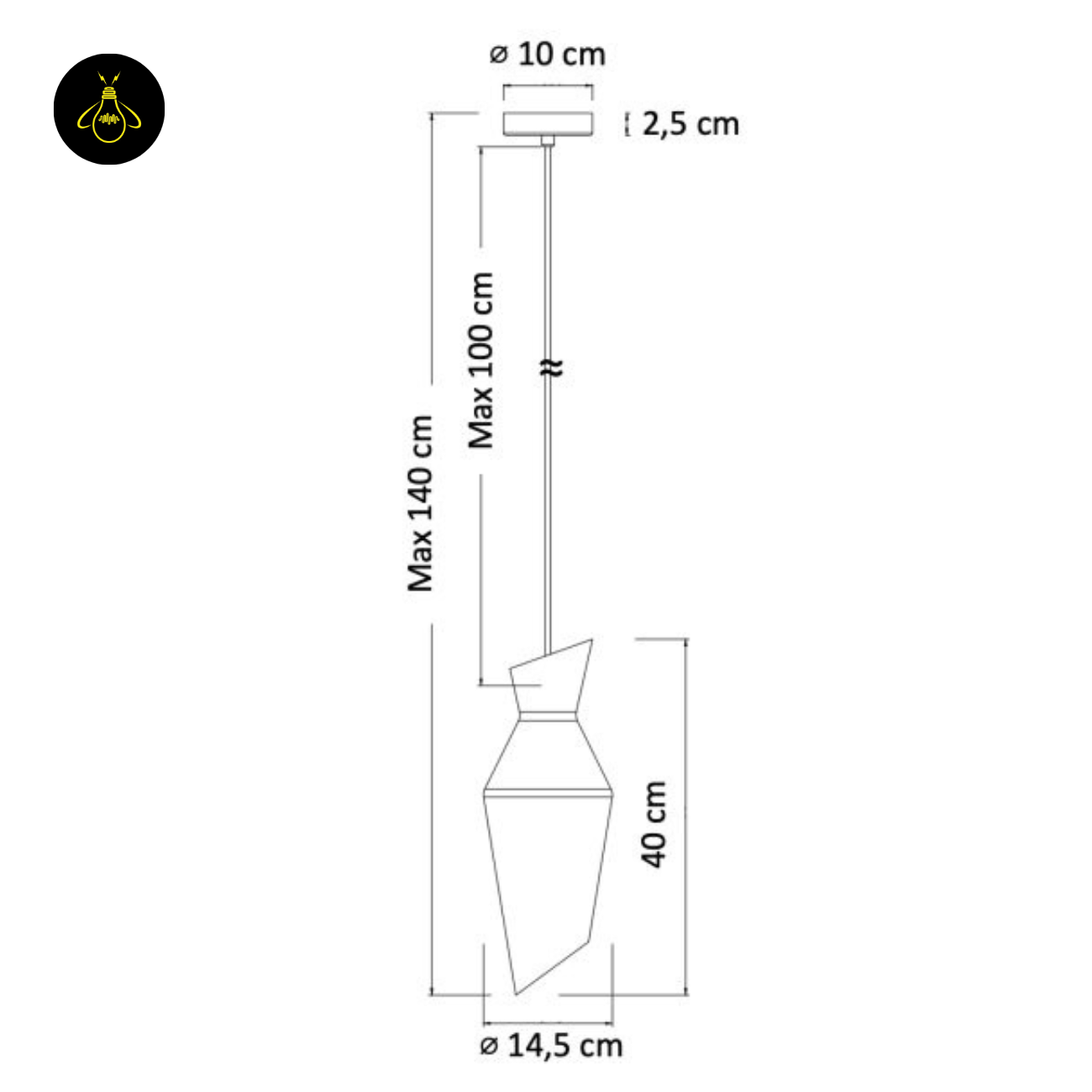 Suspension: Adjustable cable (overall drop assumed up to 1200 mm / 47.2 in)