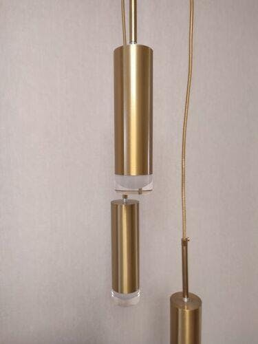 Bring a touch of contemporary elegance to your living or dining room with the Jagmag Lights Modern Pendant Light. This stylish fixture features a sleek design with a gold finish and white frosted acrylic shades. Available in 1, 2, or 3-head configurations, it's perfect for creating a customized lighting solution for your Indian home. Handcrafted in India, this pendant light offers both style and functionality.