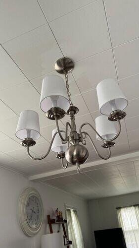 This Shabby Chandelier operates on AC 110-240V and is ceiling mounted. It is IP 20 damp-rated, making it suitable for indoor environments. Hardwired installation is required, and it's compatible with standard push switches (not included) for easy control. The 19.7″ hanging height hanging rod allows for adjustable placement and can be extended upon request.